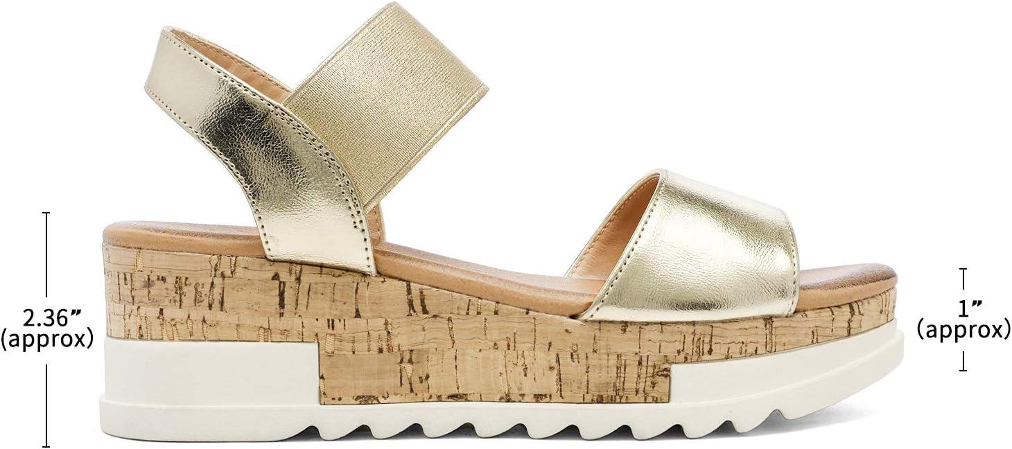 These stylish wedge sandals combine comfort and ease, featuring elastic straps for a secure, buckle-free fit. The cushioned faux leather footbed supports your feet with every step, while the lightweight PU outsole with lugs ensures stable footing. With a 2.36-inch wedge heel and 1-inch platform for added balance, they’ re perfect for walking and standing in comfort. Versatile enough to pair with dresses, jeans, skirts and beachwear, these wedge sandals for women are your go-to choice for summer strolls, vacations and casual outings.
