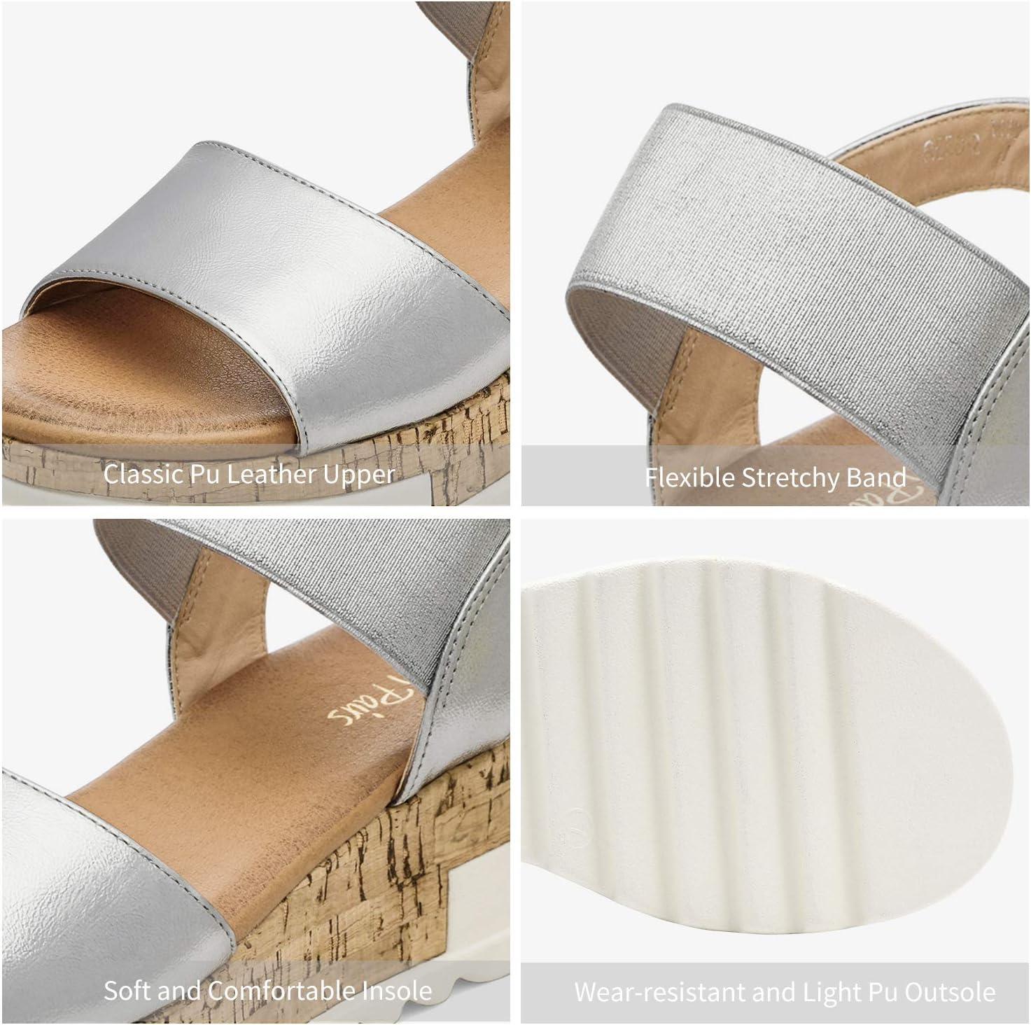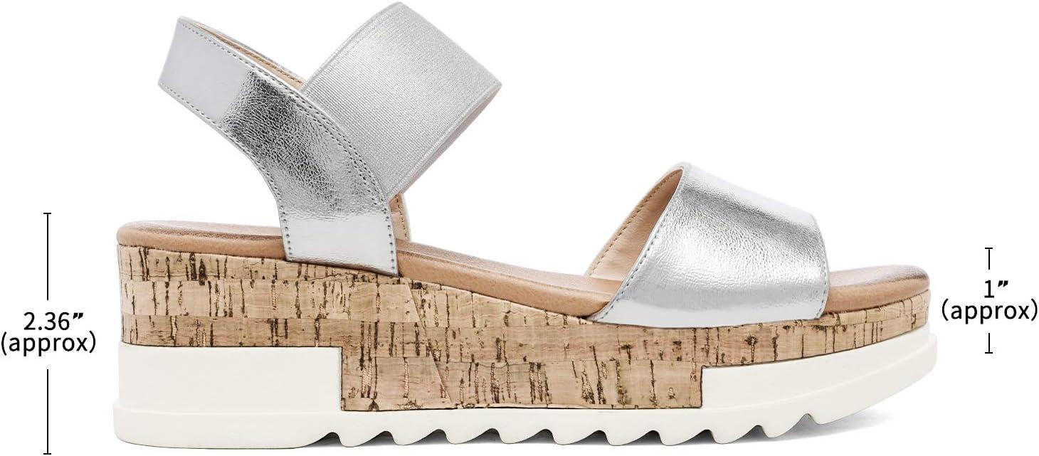These stylish wedge sandals combine comfort and ease, featuring elastic straps for a secure, buckle-free fit. The cushioned faux leather footbed supports your feet with every step, while the lightweight PU outsole with lugs ensures stable footing. With a 2.36-inch wedge heel and 1-inch platform for added balance, they’ re perfect for walking and standing in comfort. Versatile enough to pair with dresses, jeans, skirts and beachwear, these wedge sandals for women are your go-to choice for summer strolls, vacations and casual outings.