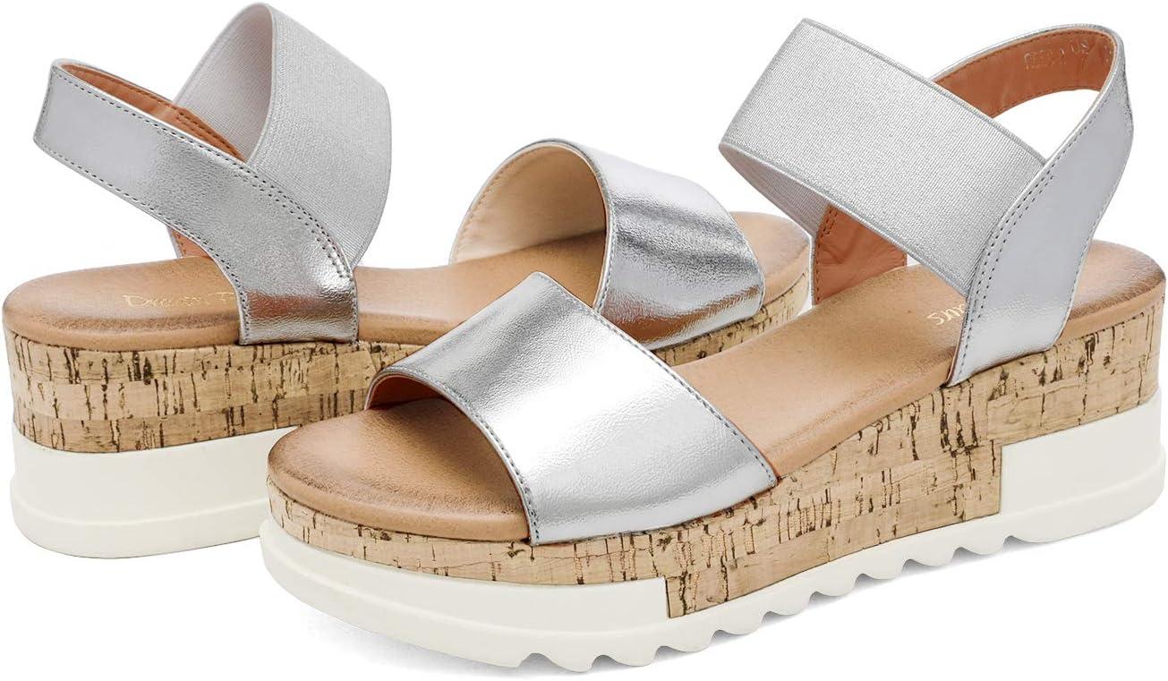 DREAM PAIRS Women’s Open Toe Casual Platform Sandals(Silver)