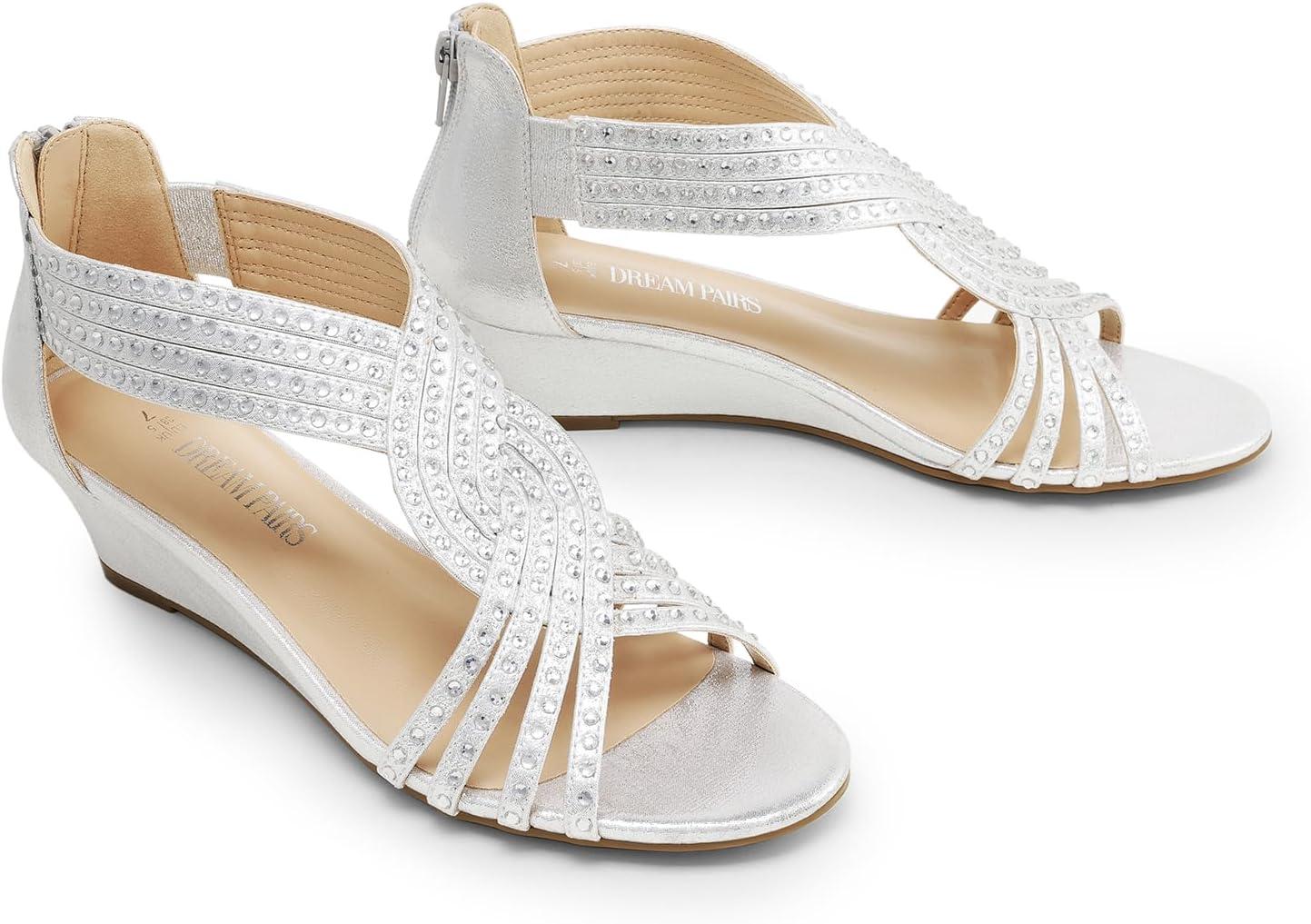 Don’t miss out on our limited-time offer: buy DREAM PAIRS Women’s Open Toe Low Wedges Sandals, Rhinestone Strappy Zipper Dress Shoes, Summer Wedding Party Travel Shoes(Silver), get {accessory} 50% off!