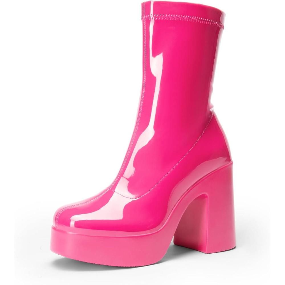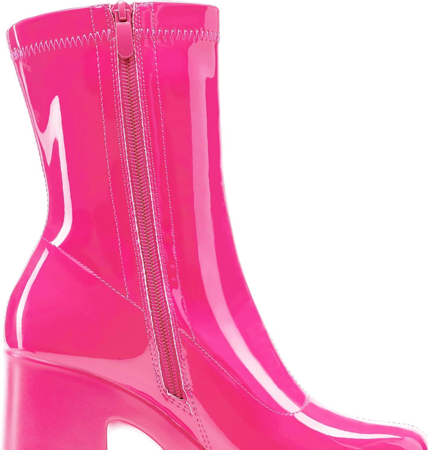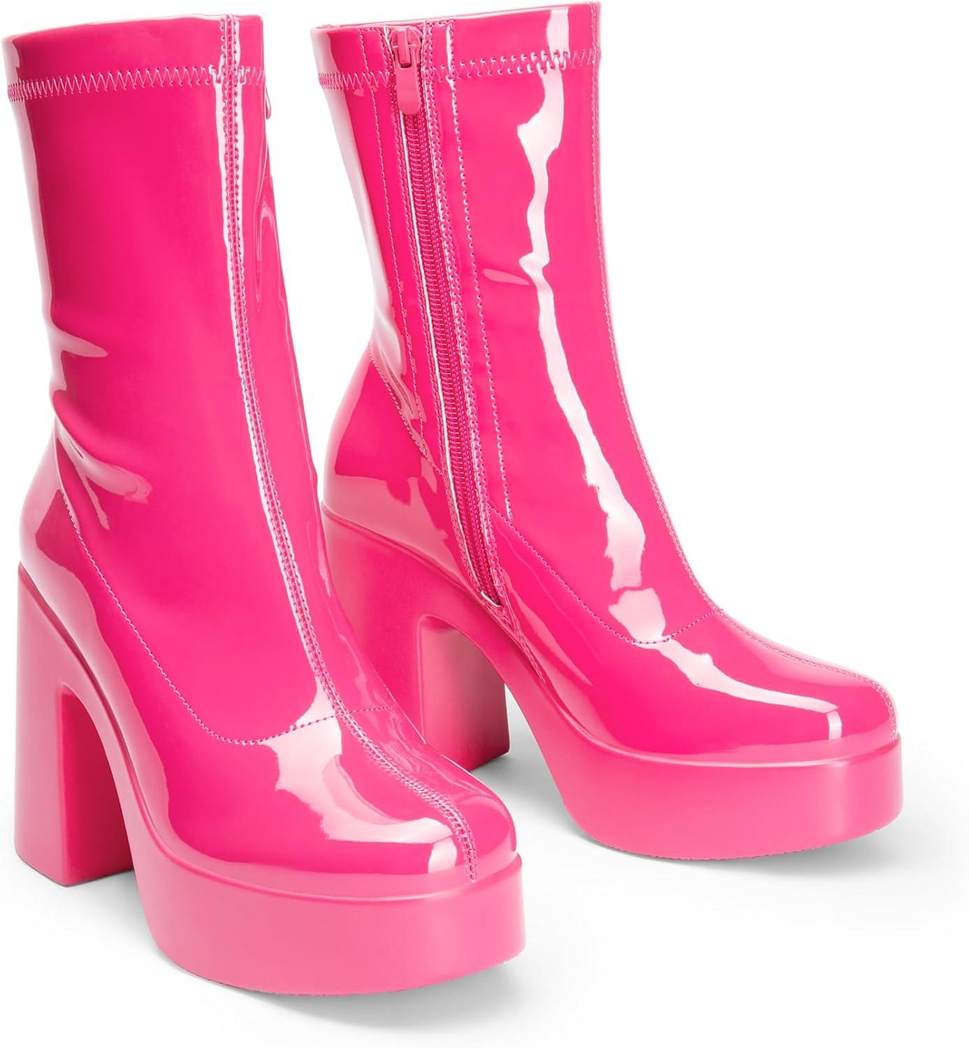 DREAM PAIRS Women's Platform Gogo Ankle Boots High Chunky Block Heel Square Toe Booties Shoes(Hot Pink-pat)