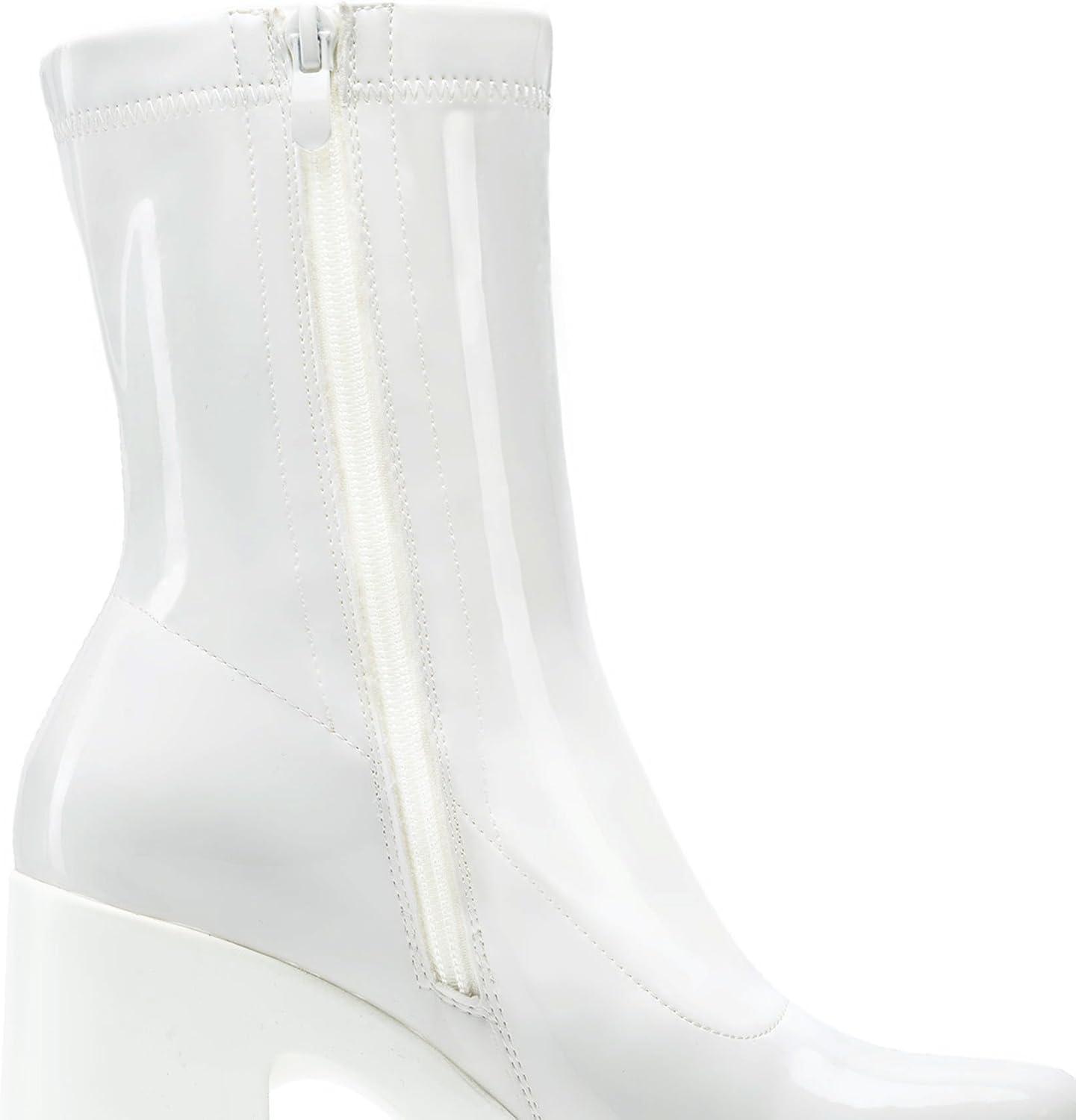 DREAM PAIRS Women's Platform Gogo Ankle Boots High Chunky Block Heel Square Toe Booties Shoes(White-pat)