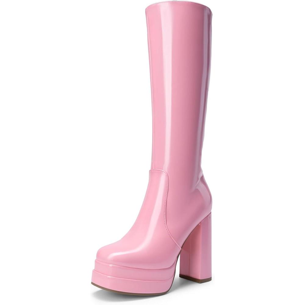 imageDREAM PAIRS Womens Platform Heeled Knee High Boots Long Chunky Tall Gogo Boots for FallPink