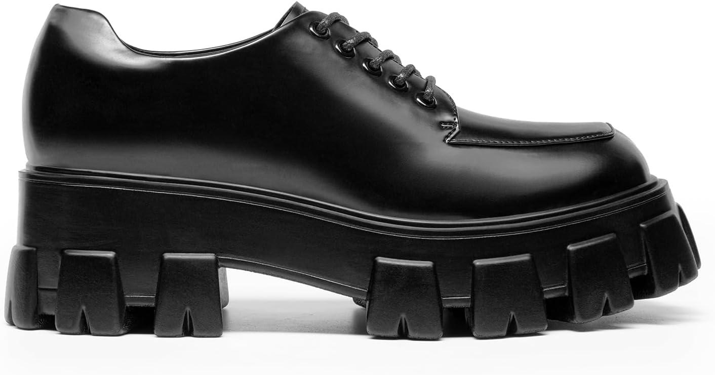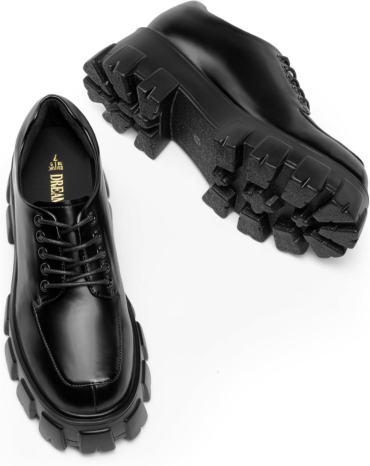 DREAM PAIRS Women’s Platform Oxford Chunky Lace Up Lug Sole Comfort Business Work Dress Shoes(Black-pu)