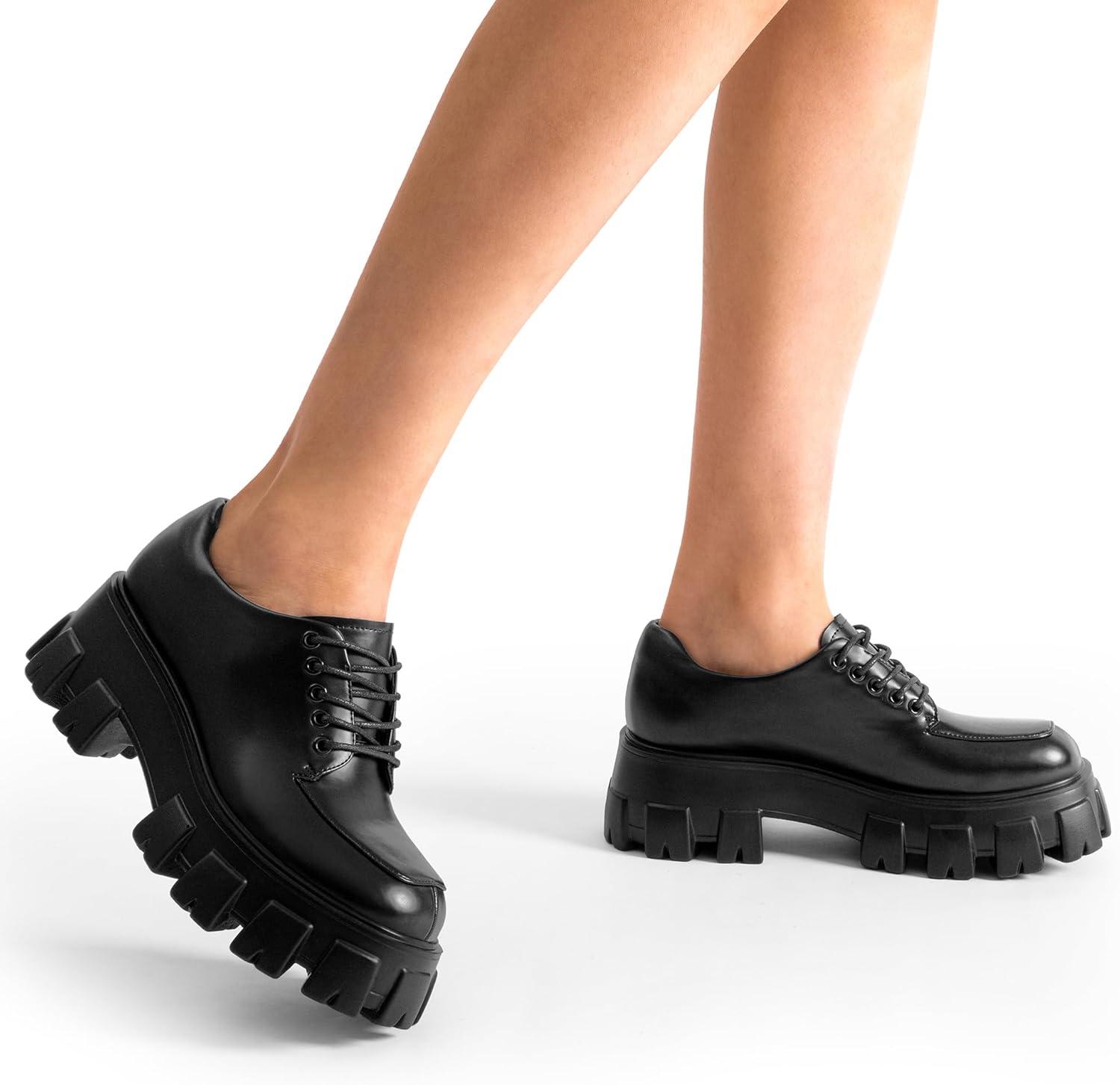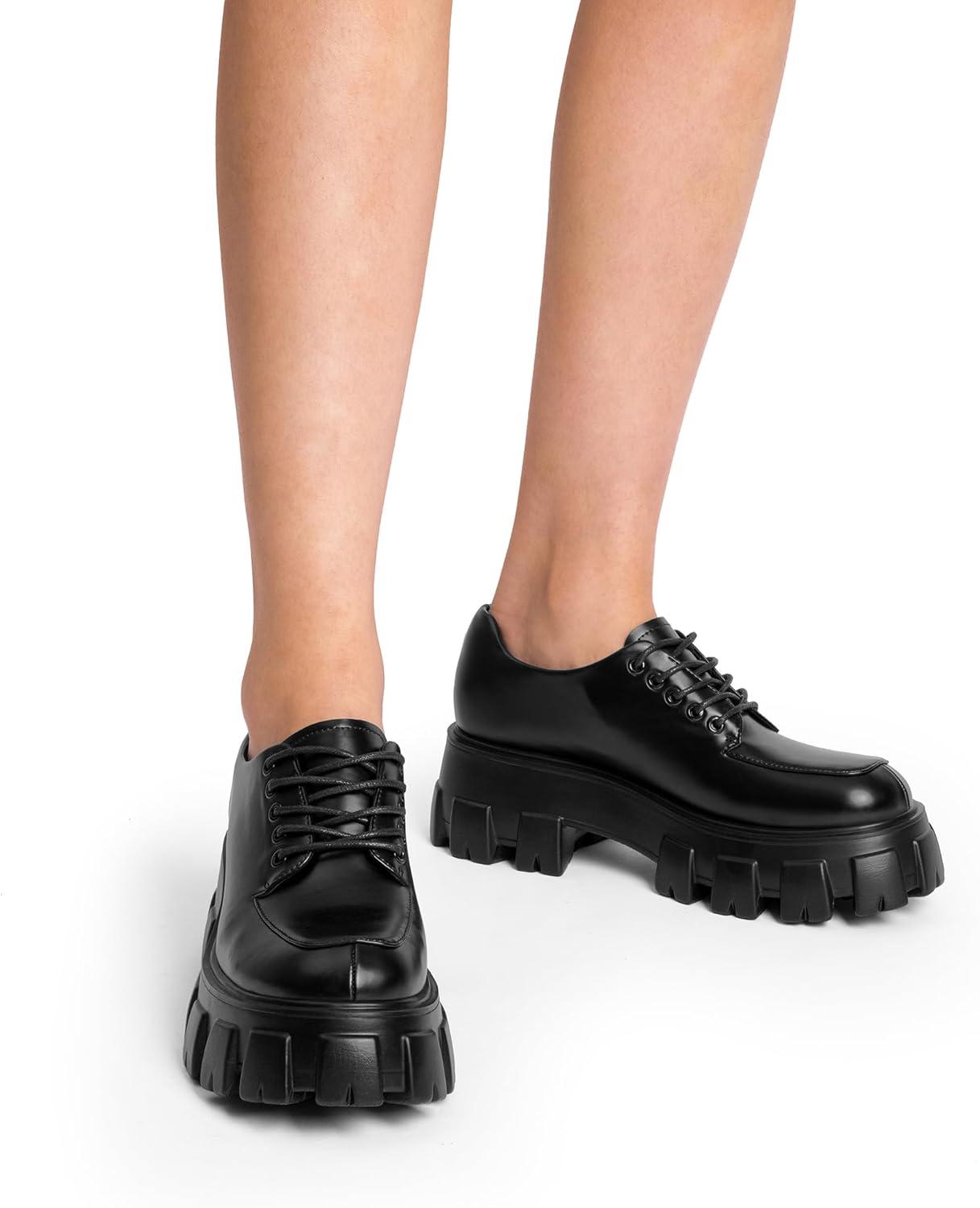 DREAM PAIRS Women's Platform Oxford Chunky Lace Up Lug Sole Comfort Business Work Dress Shoes(Black-pu)