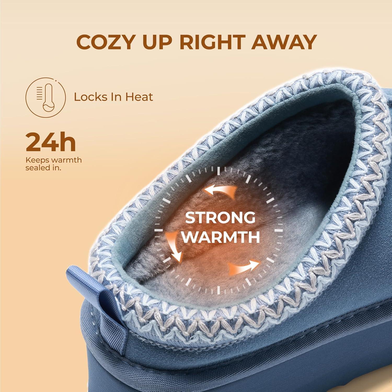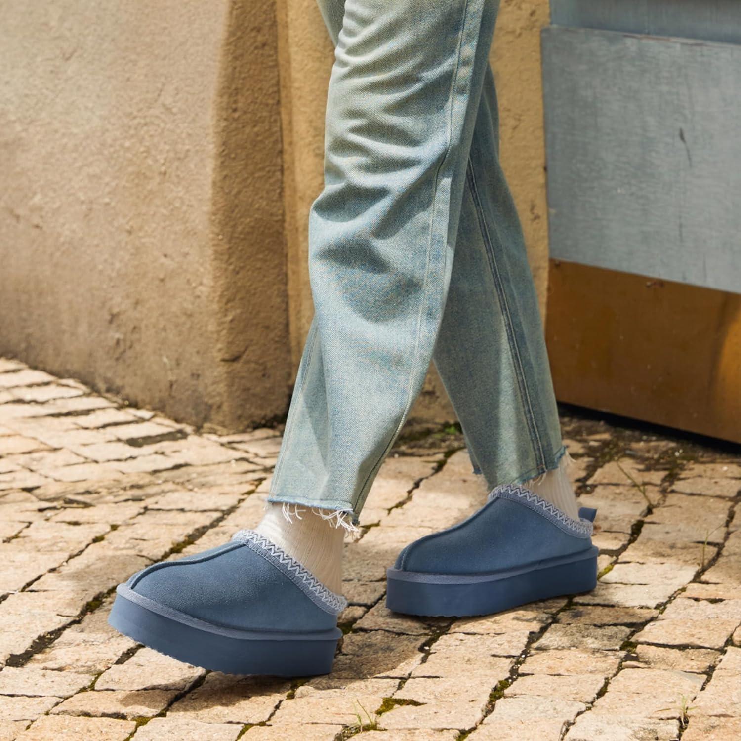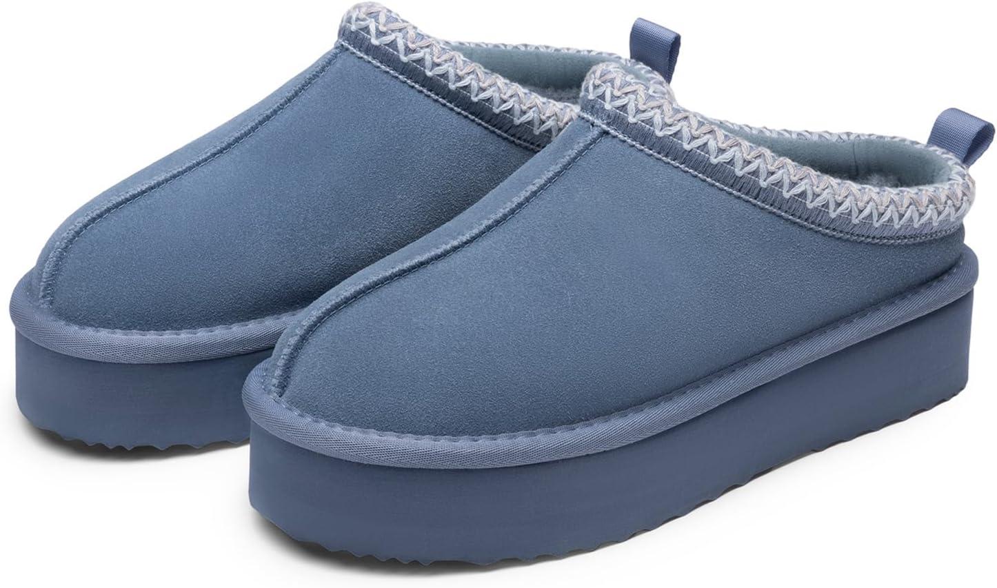 DREAM PAIRS Women's Slippers for Women Genuine Suede Platform Slip-on Warm Slippers Winter Fluffy Warm Comfy Furry Shoes for Outdoor Indoor FuzzyEasy(Dark Blue)