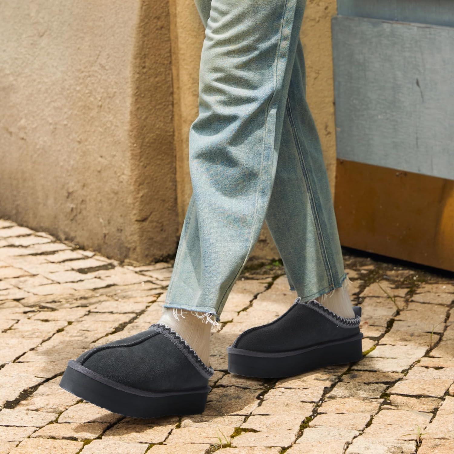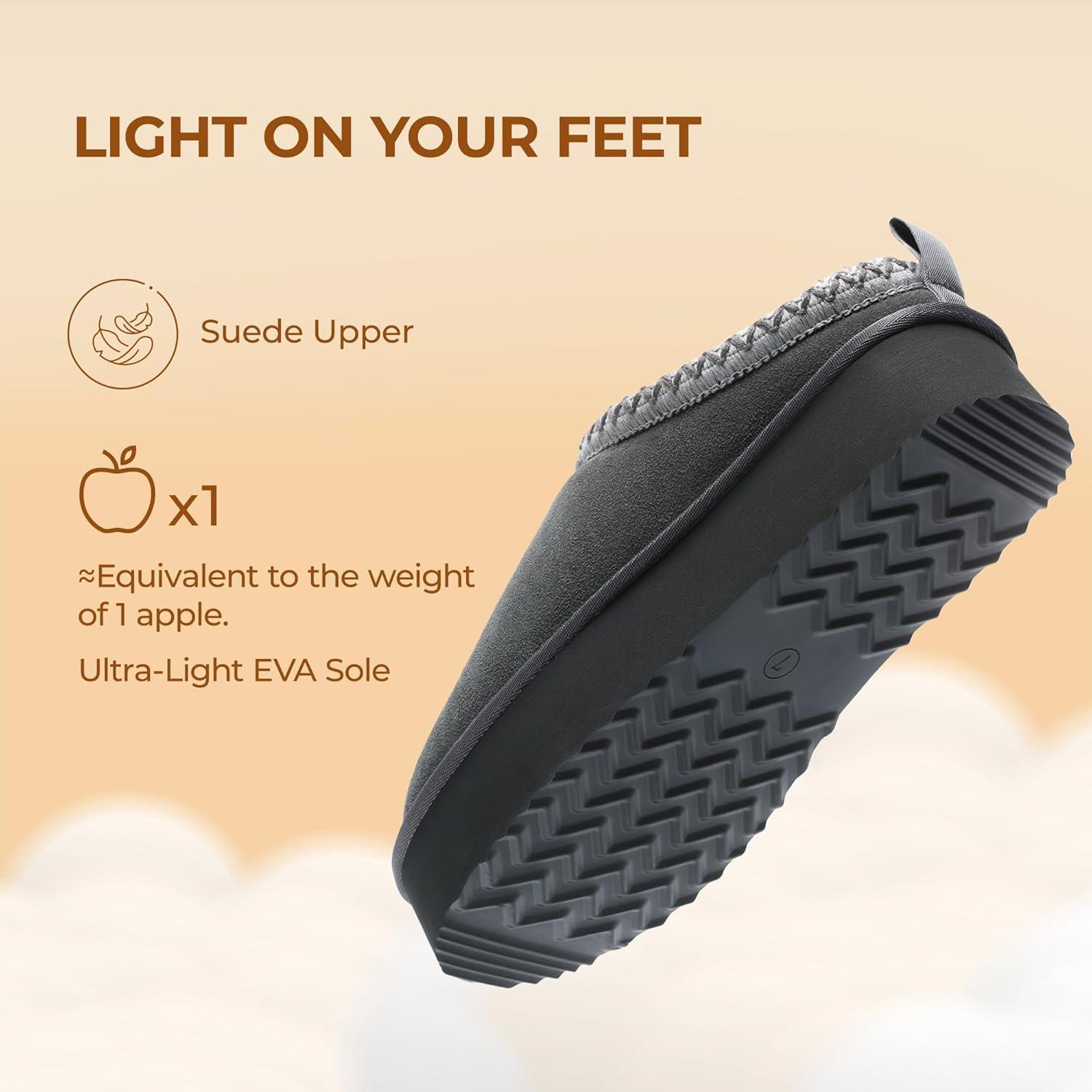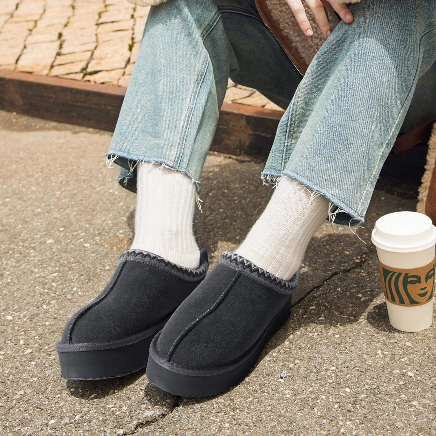 DREAM PAIRS Women's Slippers for Women Genuine Suede Platform Slip-on Warm Slippers Winter Fluffy Warm Comfy Furry Shoes for Outdoor Indoor FuzzyEasy(Grey)