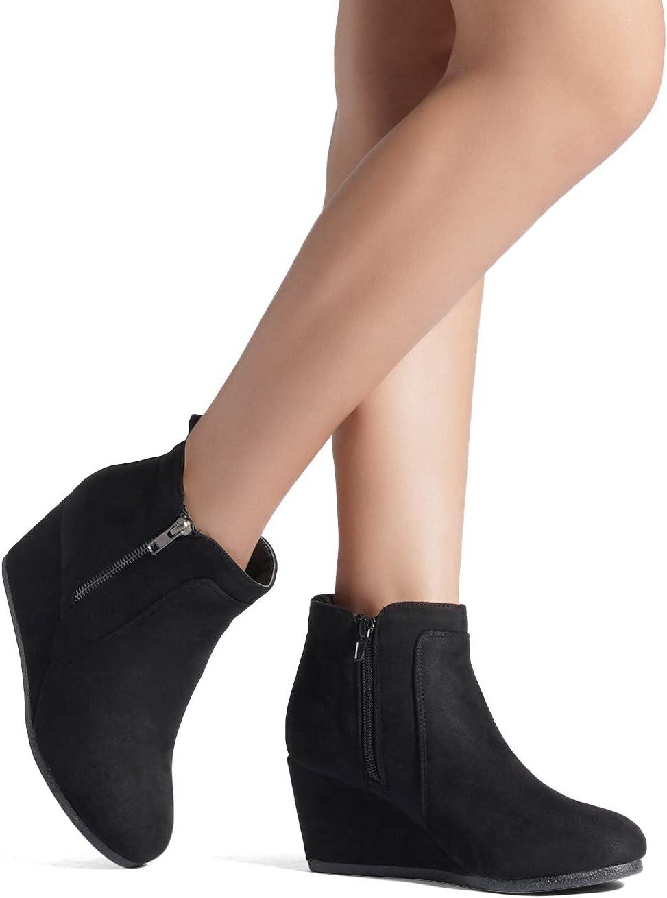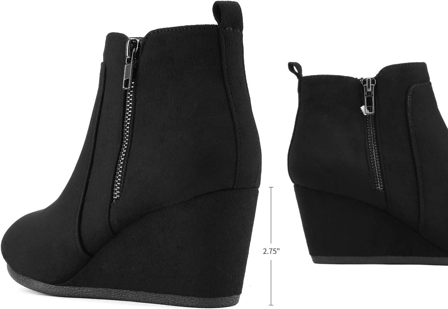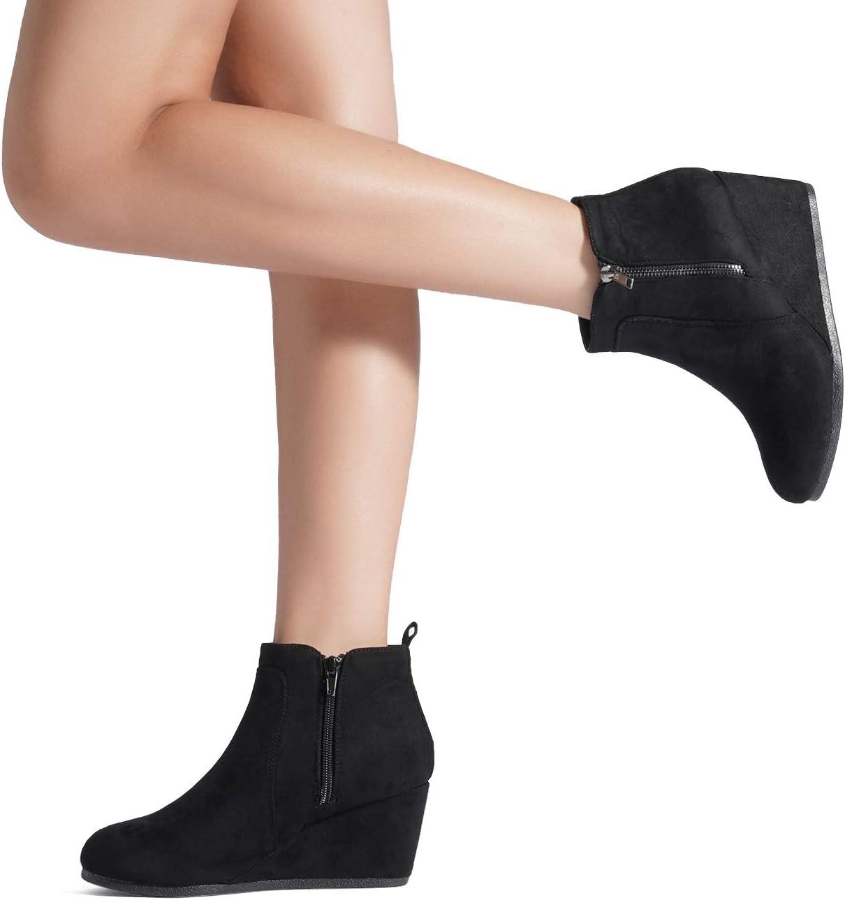 DREAM PAIRS Women’s Suede Low Wedges Ankle Boots(Black/Suede)