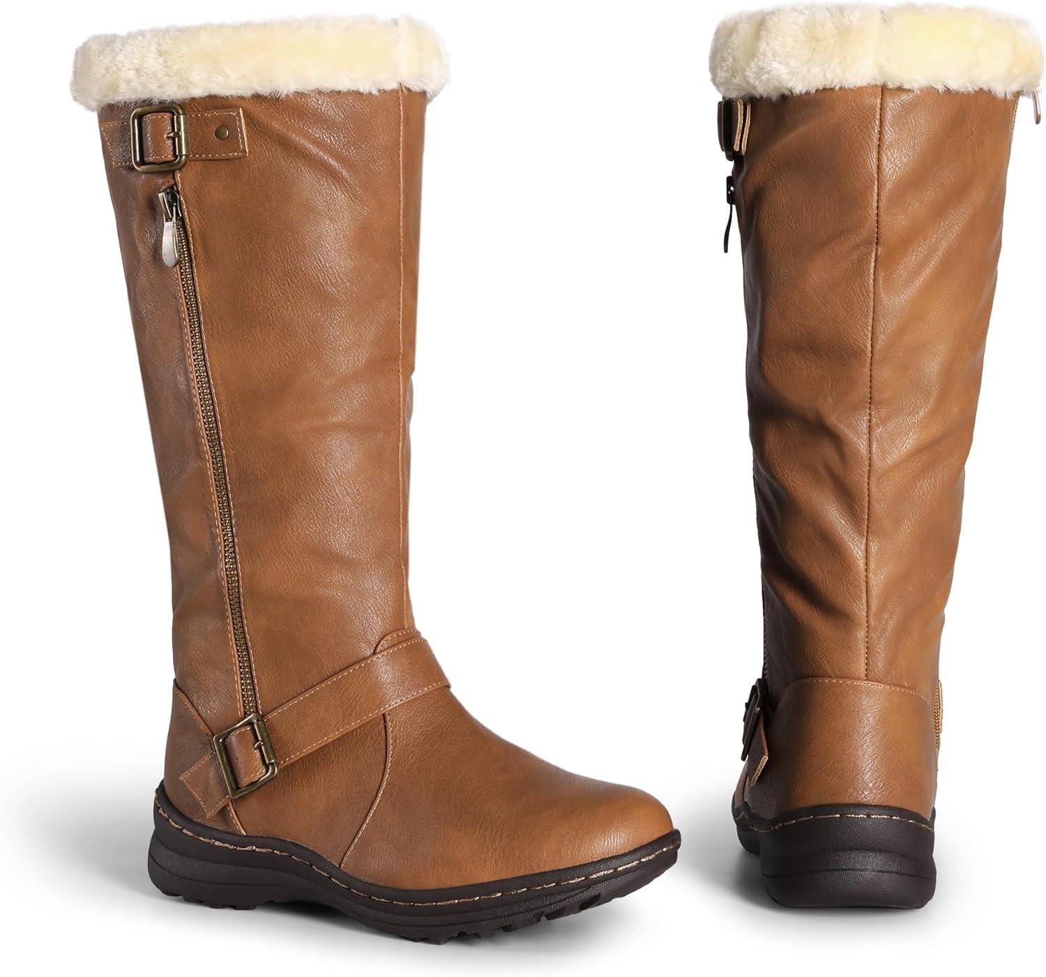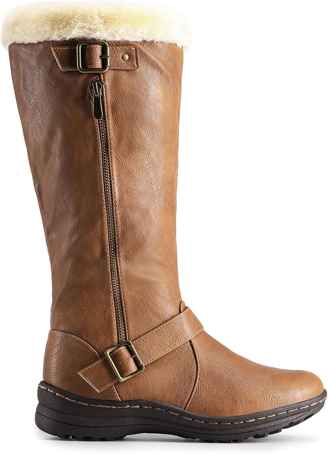 DREAM PAIRS Women’s Winter Fully Fur Lined Zipper Closure Snow Knee High Boots(Brown/Pu)